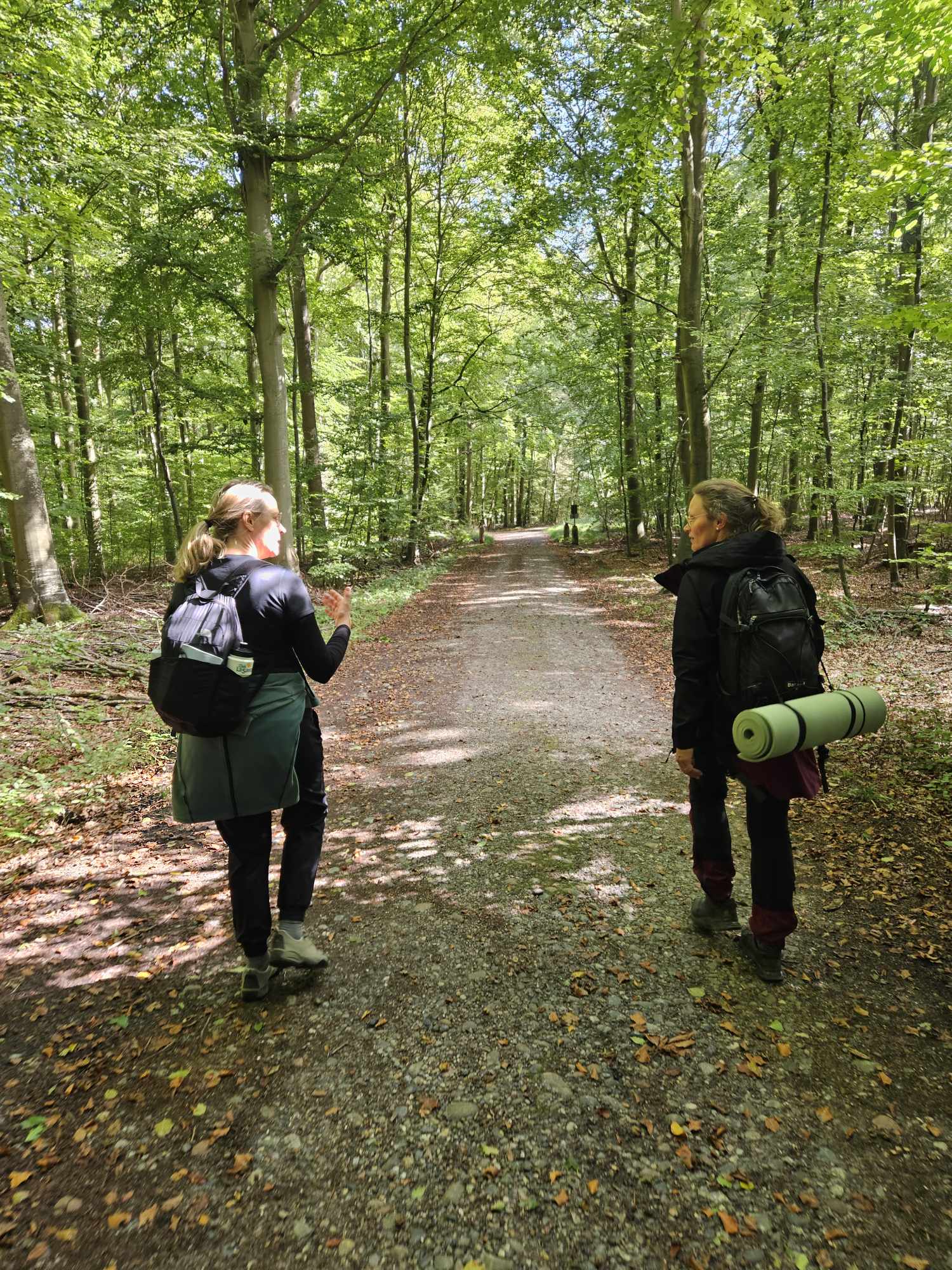 Undervejs inddrager jeg øvelser, hvis der er brug for det. Hvis du fx er meget anspændt, guider jeg dig i en grounding-øvelse siddende ved et træ eller liggende i skovbunden.